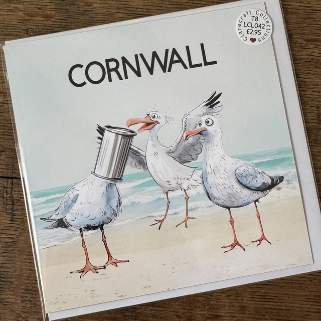 Introducing our hilarious 6" or 5" card Cornwall beach scene featuring 3 seagulls. This funny card captures the essence of a classic beach day in Cornwall with its quirky and playful design. Perfect for those who love seaside humor and fun, this card is ideal for birthdays, thank yous, or simply to brighten someone's day. Measuring 6 inches, this card is made with high-quality materials and is sure to bring a smile to anyone's face. Don't miss out on the chance to share a laugh with your loved ones - order your "6" card Cornwall with 3 seagulls on the beach today!