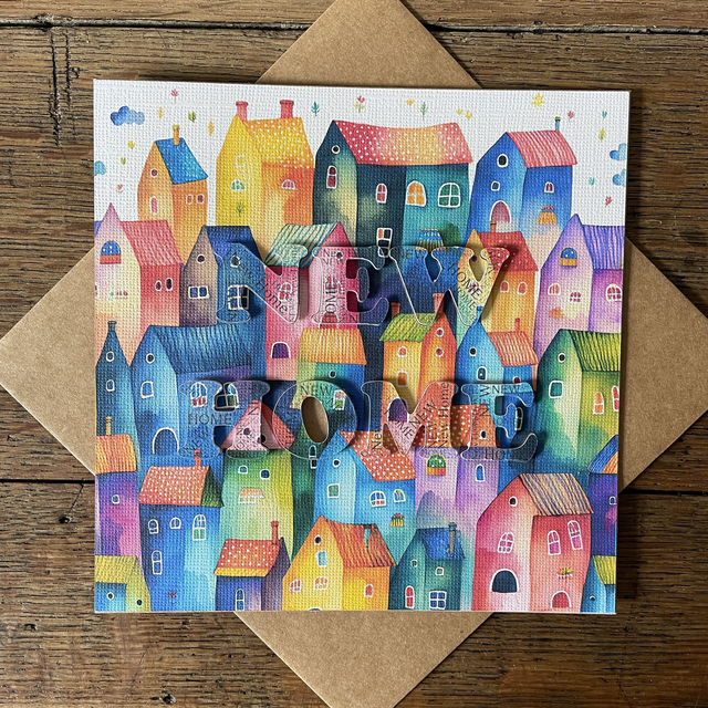 Measuring 6" square and featuring a stunning eclipse design with houses in the background, this card is printed on premium textured card stock for a high-quality finish. The envelope is also made of durable Kraft material for added protection during shipping. Left blank inside for your own personalized message, this card is ideal for sending heart warming congratulations to loved ones on their new home.