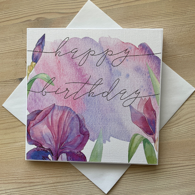 Printed on textured card, black glitter pen 'Happy Birthday'